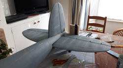 For our short war drama 'Turning Tide,' I scratch built a 1/9th scale section of a Heinkel He 111 bomber to stage the aftermath of it's crash into the sea. To save time and money, the model was only finished where it would be seen by the camera. An adjustable underwater rig was also designed and built to pose the model in the correct position in the water. Research and location scouting was done to find the ideal patch of water to film the miniature and achieve the successful illusion of a miniature sea. The shot was filmed at 75 fps to slow down the footage and give scale and weight to the waves. The miniature was then composited with footage of rocks from the main live action shoot.
